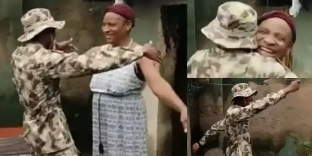 A video making the rounds online captures the emotional moment a young military man reunited with his mum after a year of fighting terrorists.