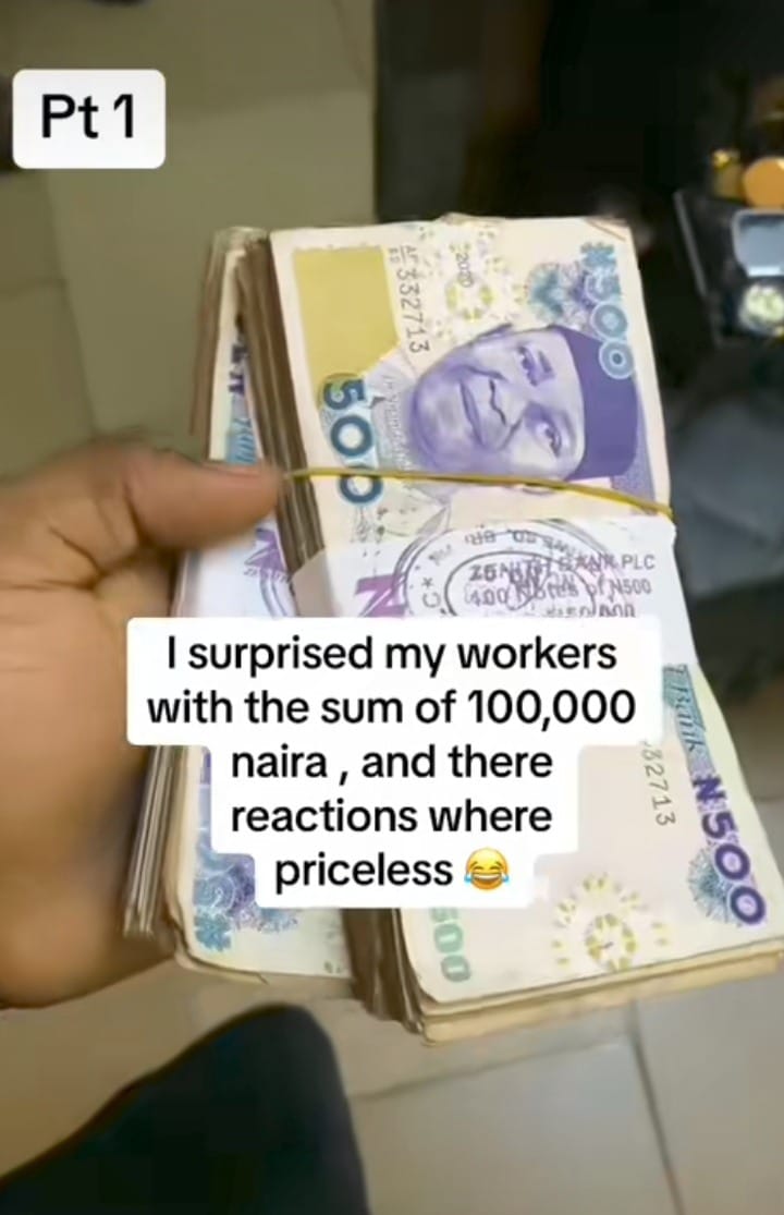 Employer gives out N100K to staff to help them with high cost of living, they react emotionally in video