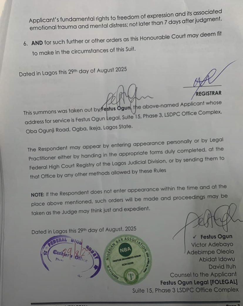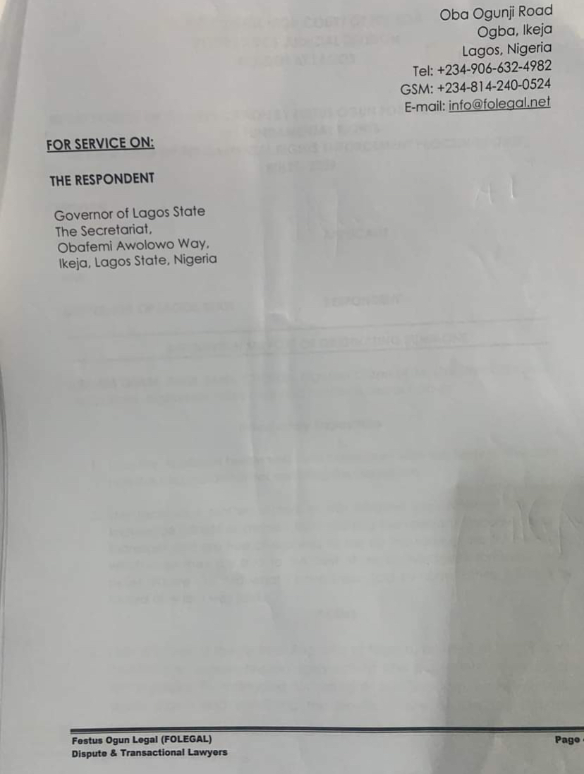 In his summons, Festus is asking the court to declare the action illegal, compel Governor Sanwo-Olu to unblock him, and issue a public apology.