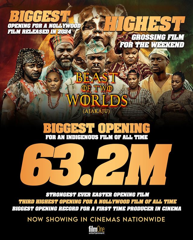 Nigerian filmmaker, Eniola Ajao marks her debut in the cinematic world with “Beast of Two Worlds,” which has garnered an impressive 63.2 million naira within four days across cinemas in Nigeria.