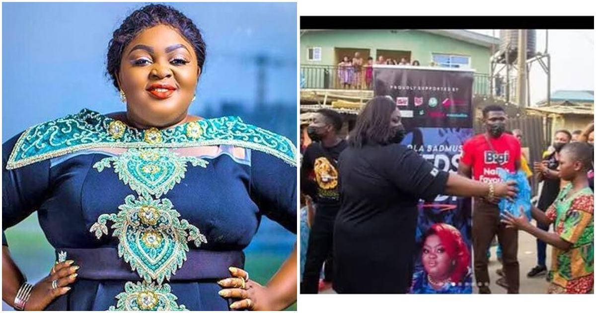 Nollywood actress Eniola Badmus took to her Instagram account to share photos of her visit to an orphanage home in Lagos.