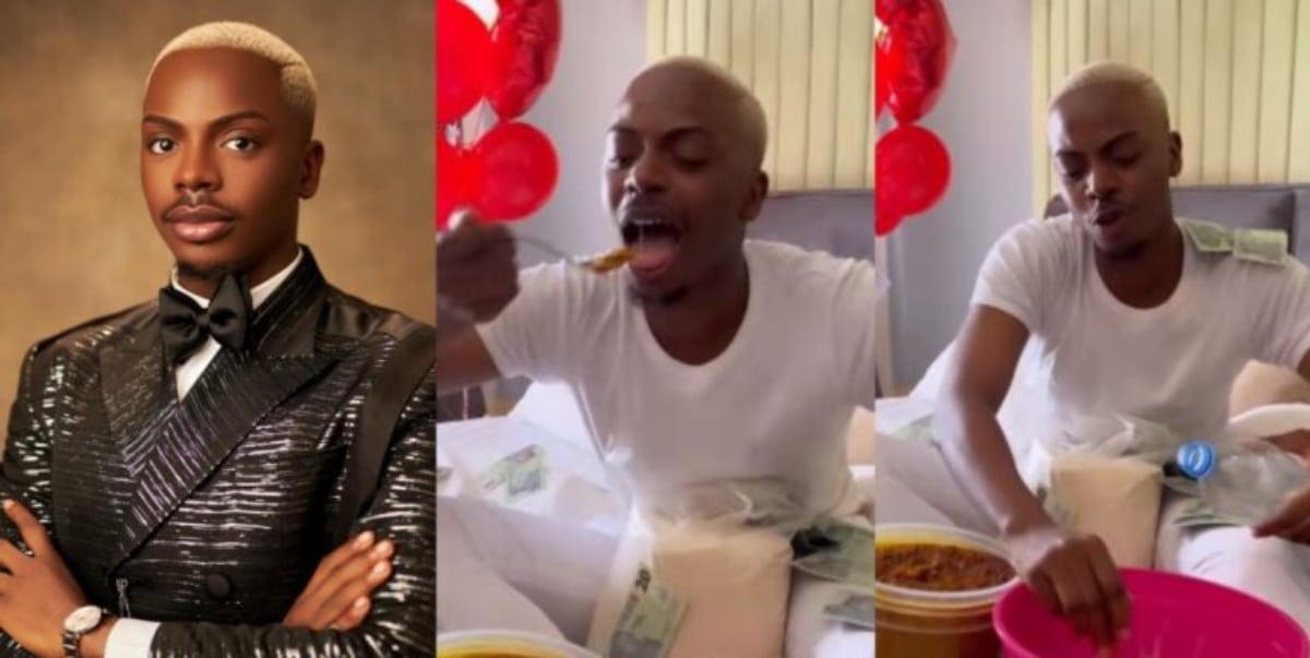 In a heartwarming celebration that took social media by storm, Enioluwa Adeoluwa, a fast-rising influencer, was surprised with a unique birthday present made of cooked beans and garri from his friends.