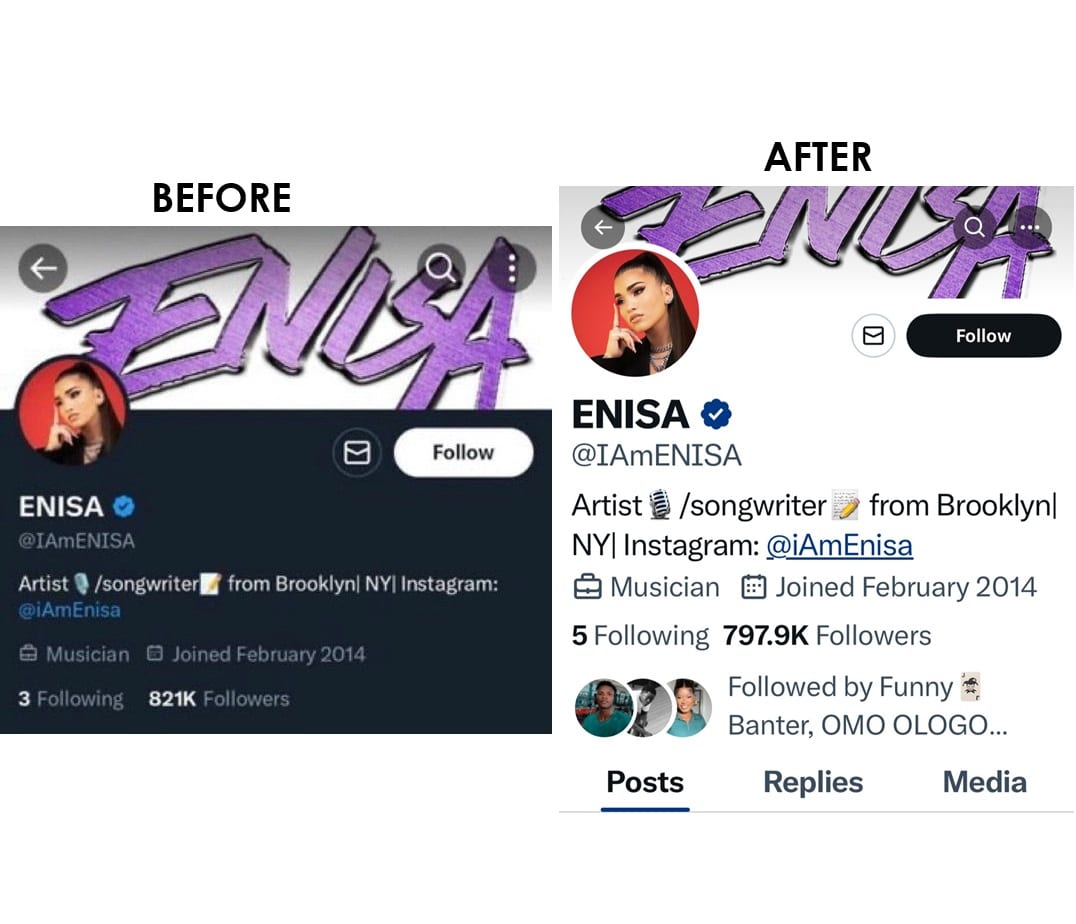 This move outraged Nigerians, who responded with widespread criticism and a mass unfollowing campaign, resulting in Enisa losing over 25,000 followers.