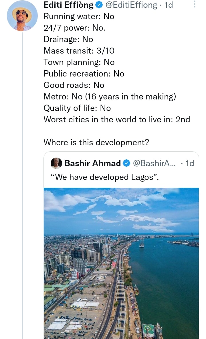 Effiong made this disclosure on Twitter while reacting to a troll who tackled him for voicing concerns about the development index in Lagos.