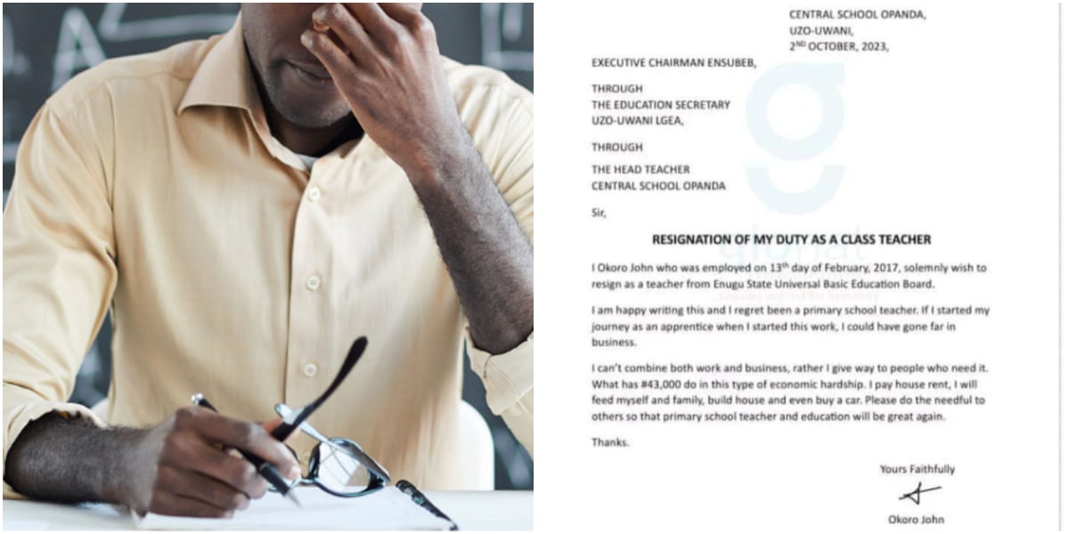 A resignation letter from a heartbroken primary school teacher in Enugu has surfaced on social media, sparking widespread reactions.