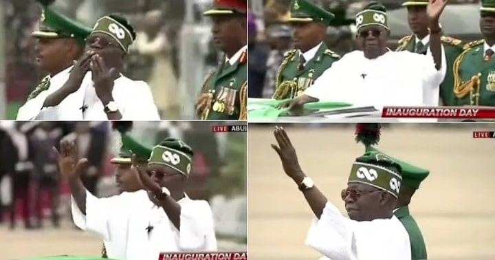 President Bola Ahmed Tinubu excitedly blew kisses at Nigerians after he was sworn in as the new president of the country.