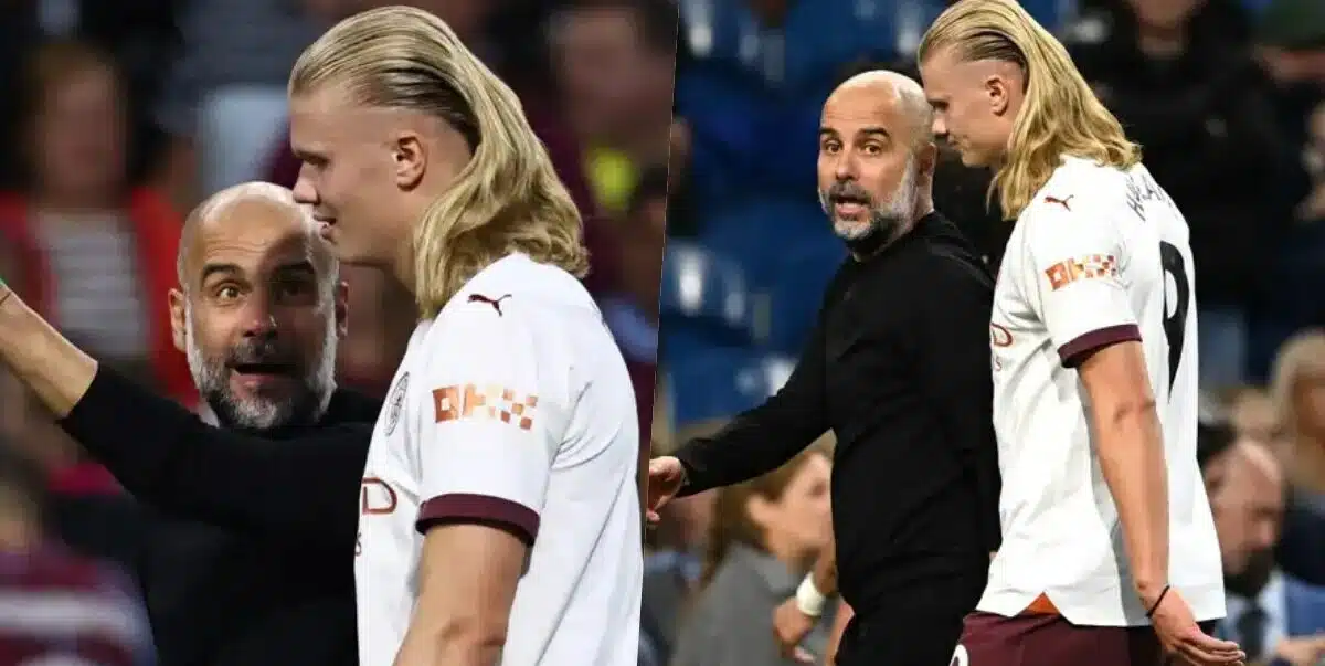 Guardiola who was angry with the Norwegian’s attitude, marched towards him at halftime to get him under control.