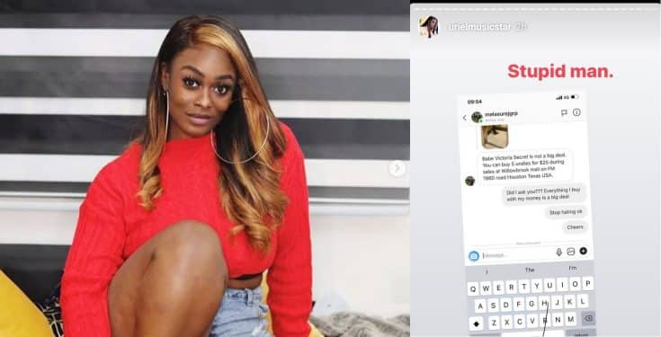 The Big Brother Naija reality star shared a video of herself trying on a bra at Victoria’s Secret. Afterward, an IG user sent her a message telling her that it’s no big deal to shop there because “you can buy 5 undies for $25 during sales”.