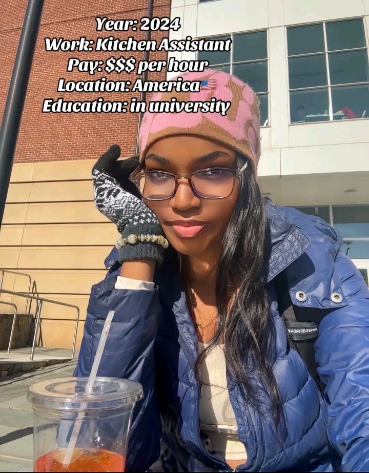 A next photo shows her in 2024 looking a while lot different, having moved to America and earning 100s of dollar while schooling abroad.