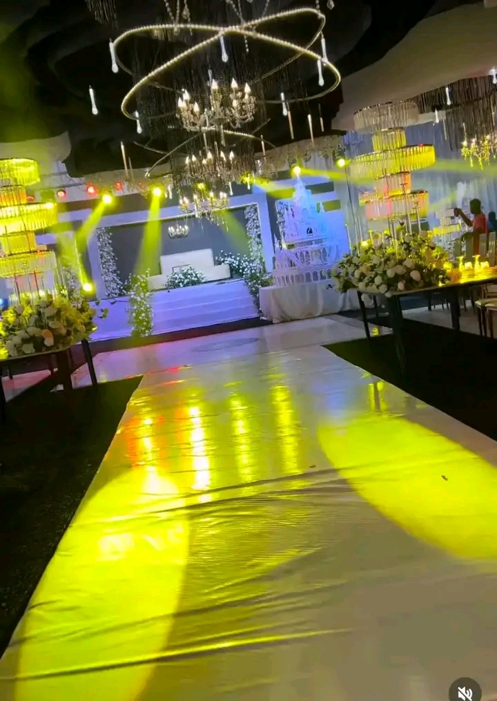 The wedding reception offered a glimpse of sparkling lights and an elaborately decorated cake.