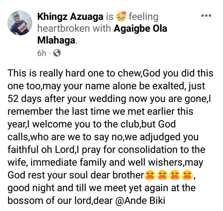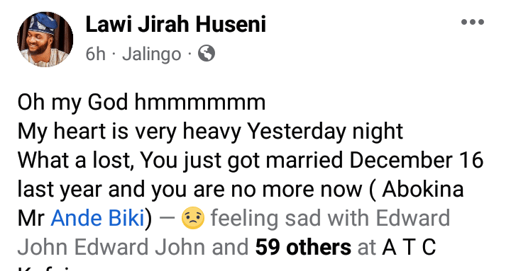 A close friend of the late married man took to Facebook on Thursday, February 8, 2024, to offer heartfelt condolences and reflect on their shared memories.