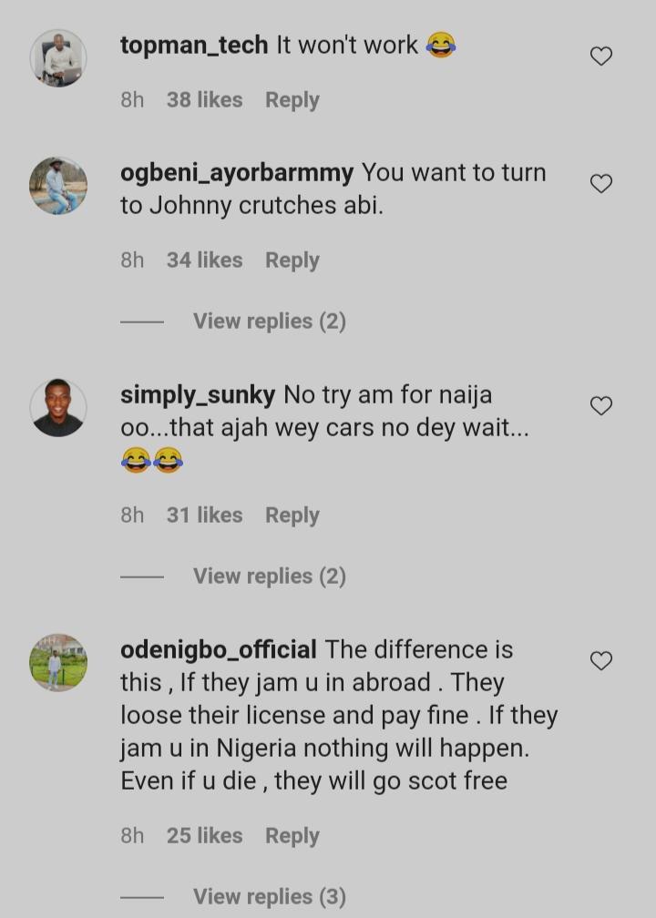 John Drille, who is currently in LA shared a video of him making use of the Zebra crossing and showed how the drivers waited for the pedestrians to pass.