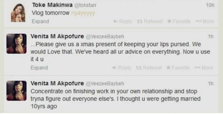 Fans dig out old comments of Venita trolling Toke Makinwa 10 years ago
