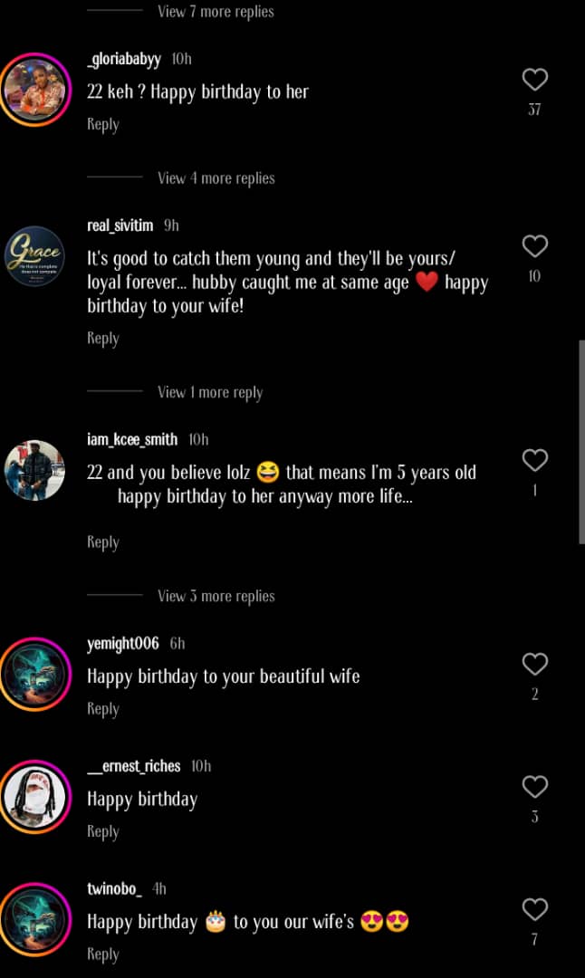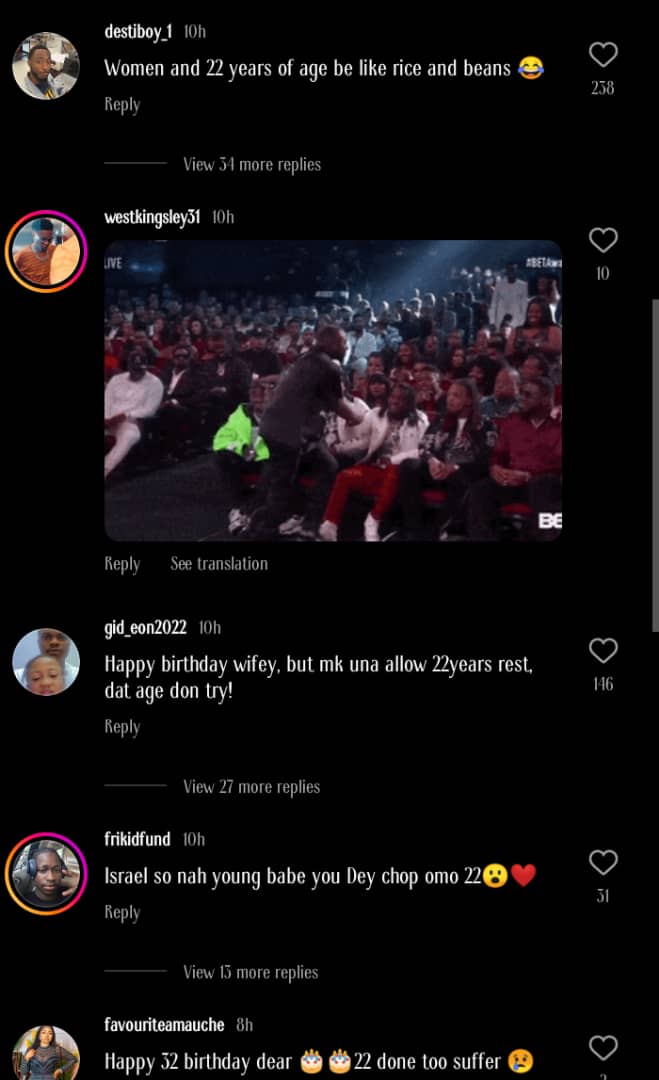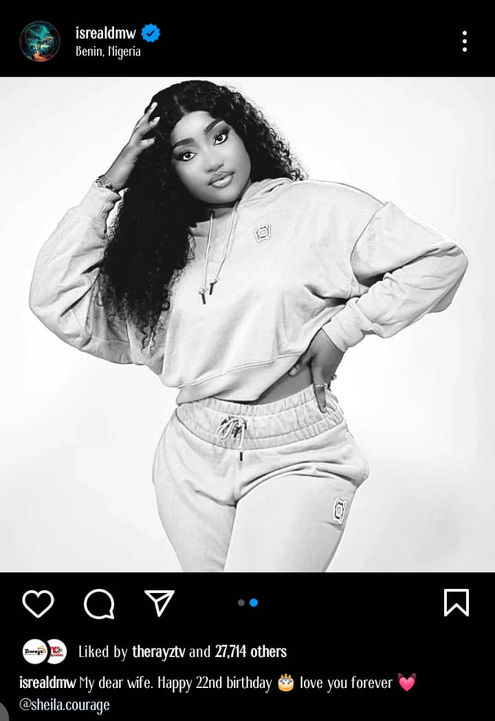 In his birthday tribute to his wife, Isreal revealed that she is 22 years old.