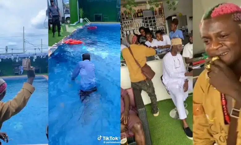 Fans scramble for money as Portable sprays bundles of cash and throws the rest into the swimming pool (Video)