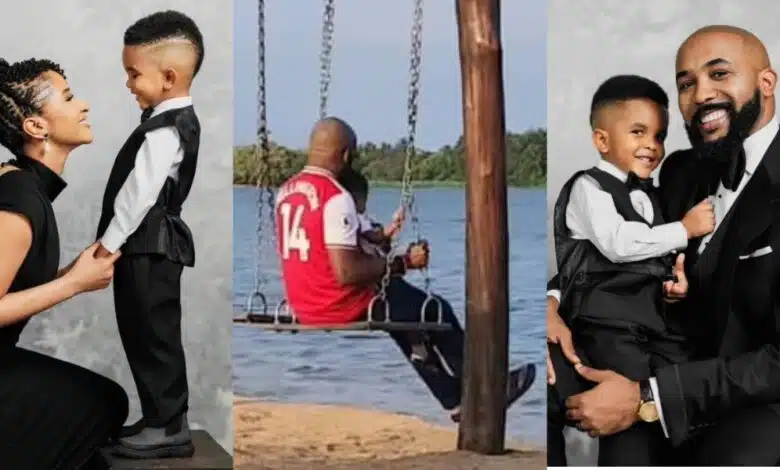 On her Instagram page, she posted a video of Banky W, who had just undergone his fourth surgery to remove a cancerous tumor, swinging with their son.