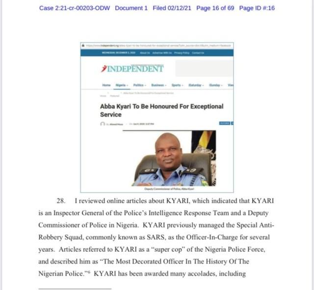 In an affidavit issued before the United States District Court, DCP Kyari is beyond reasonable doubt an accomplice of Ramon ‘Hushpuppi‘ Abbas after helping him jail a competitor which enabled him to land a successful fraudulent deal.