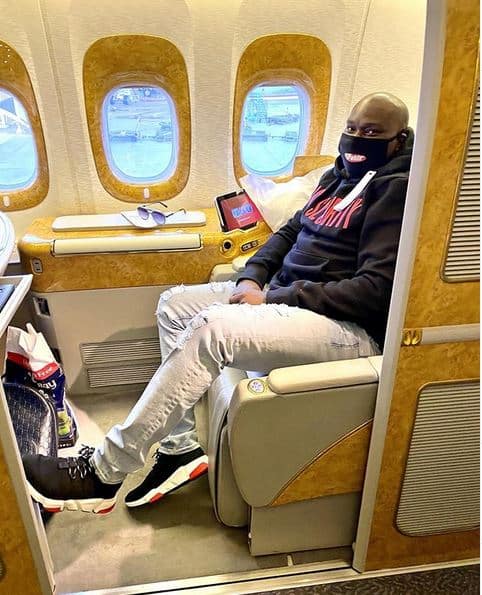 The Instagram big boy shared videos of himself on a first class flight this afternoon as well as a video arriving his destination which looks like Dubai, UAE. In some of the images he shared, Mompha is seen rocking a face mask apparently over the coronavirus outbreak.
