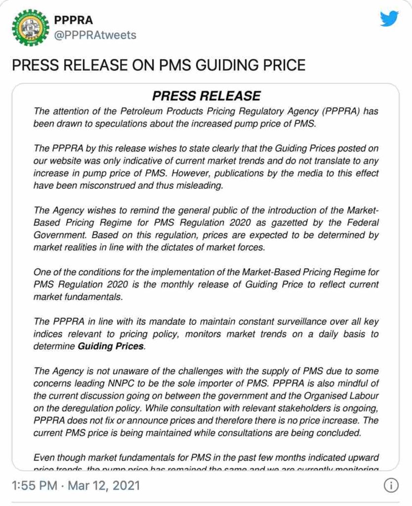 “Until then, all marketers are strongly advised to maintain the current pump price of PMS before the emergence of this unfortunate information.