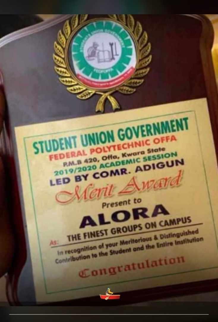 The Student Union Government of the Federal Polytechnic Offa has presented an award of excellence to cultists on the campus.