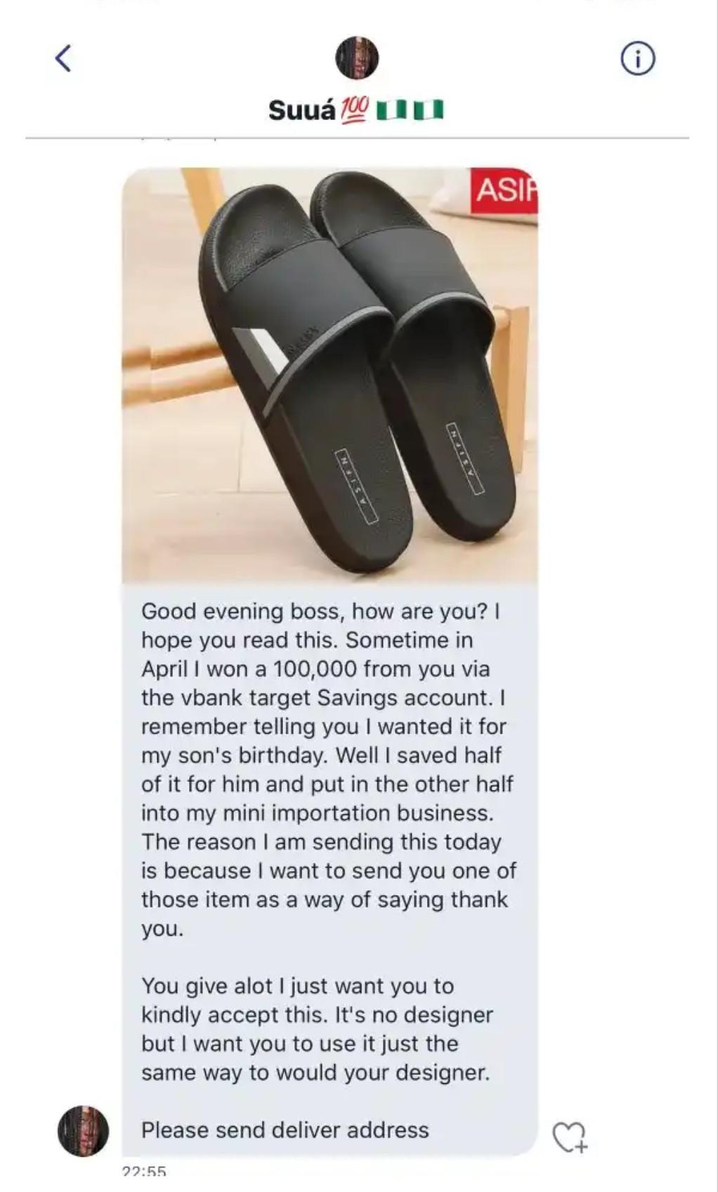 Showing gratitude, the fan identified as Suua on social media, presented a footwear to the Mavin boss.