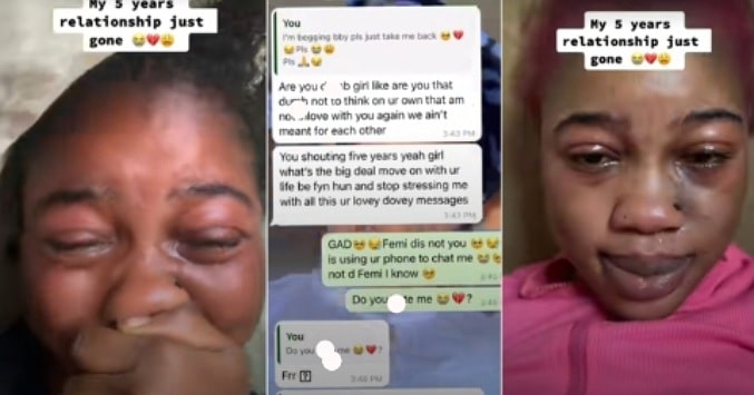 “Femi you promised me forever” – Lady leaks chats as her relationship of 5 years crashes (Video)
