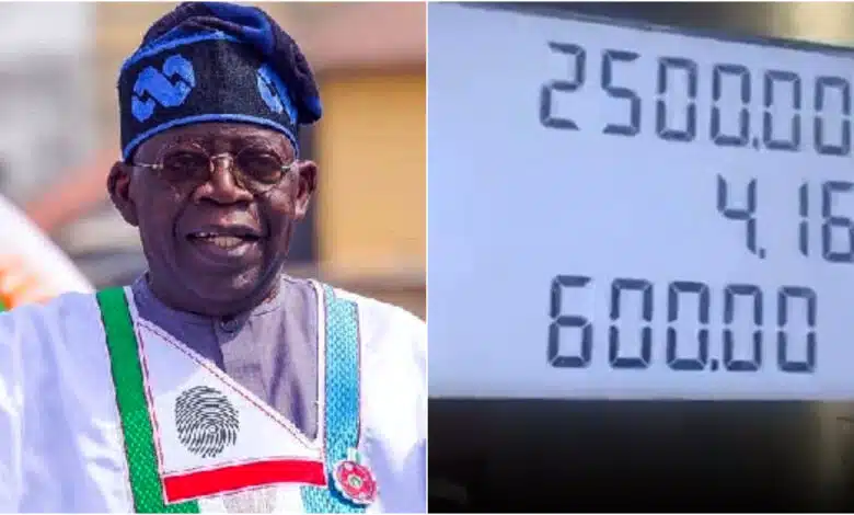 Barely 24 hours after president, Bola Tinubu announced fuel subsidy, a fuel station has been seen selling fuel for N600 per liter.