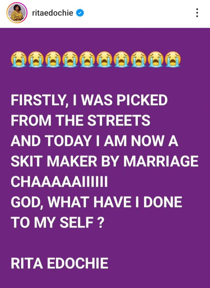 “Firstly, I was picked from the streets and today I am now a skitmaker by marriage chaaaaaiiii.