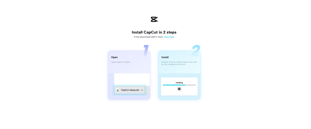 First, go to the CapCut official website. Save the installation file to your computer. Open the file and install the software following the instructions. Install the program, then open it from your desktop.