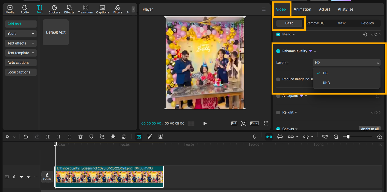 Steps to Repair Blurry Birthday Footage using CapCut PC