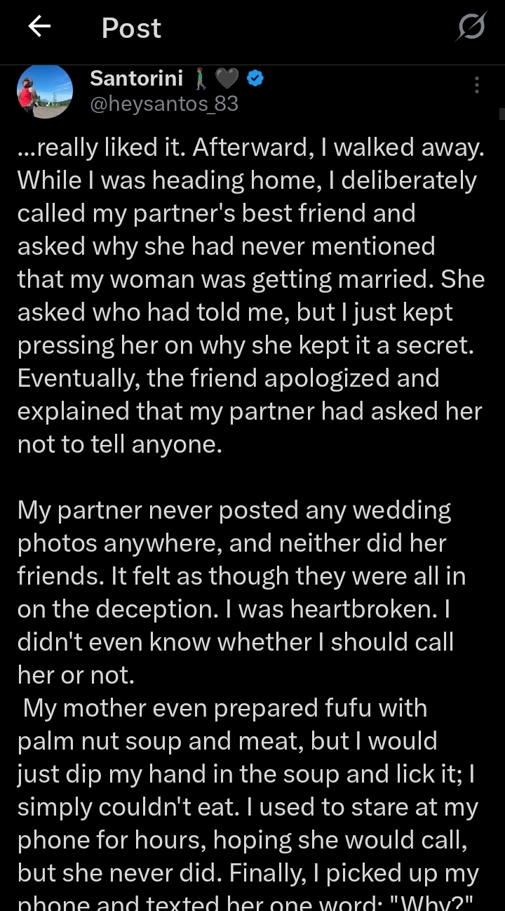 However, he reached out to his ex-girlfriend’s best friend who confessed to him that she walked down the aisle.