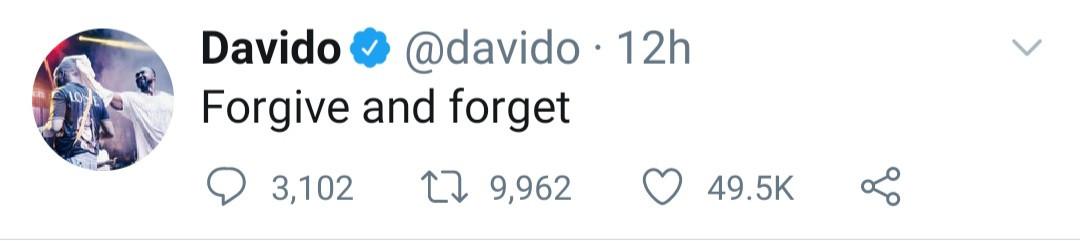In reaction to this, Davido in a tweet said: