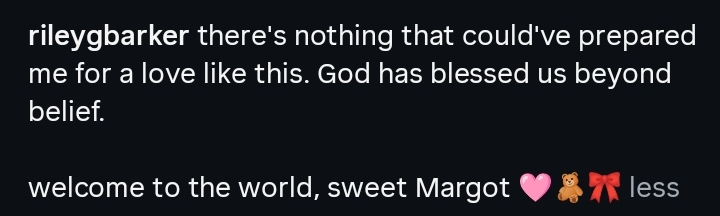 There’s nothing that could’ve prepared me for a love like this. God has blessed us beyond belief. Welcome to the world, sweet Margot🎀🧸🩷.