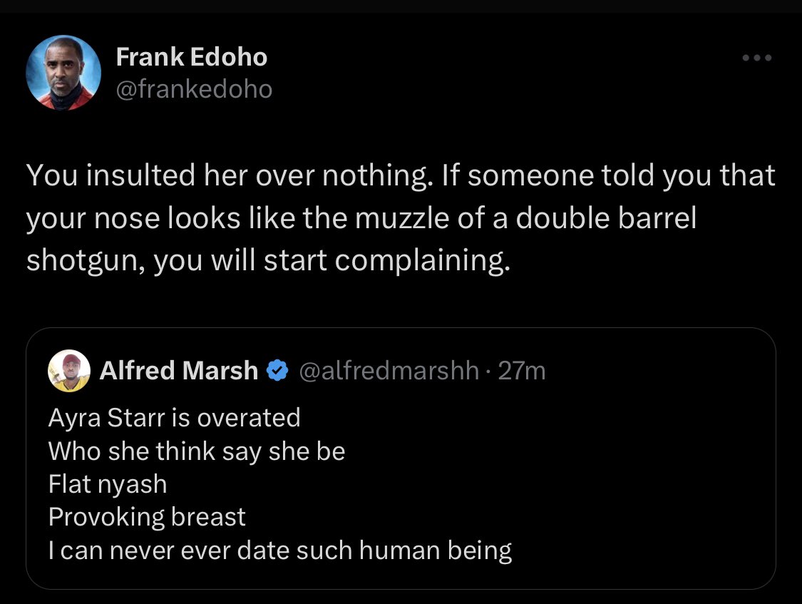 Frank Edoho was drawn to one of the backlashes Ayra Starr received, in which a netizen called the singer “overrated.”