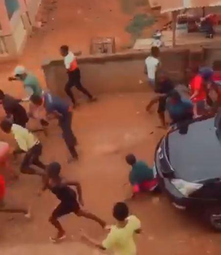 Video footage has captured the moment fresh graduates of Auchi Polytechnic accidentally ran into an excited man who seemed to be leaping for joy as they (graduates) threw out some cash to mark their celebration.