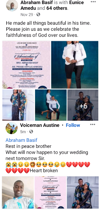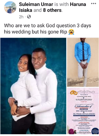 “From wedding bells to funeral tolls” – Nigerian man dies 3 days to his wedding