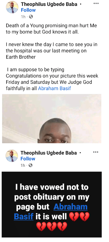 Theophilus Ugbede Baba, a friend of the deceased, took to Facebook to share his sorrow.