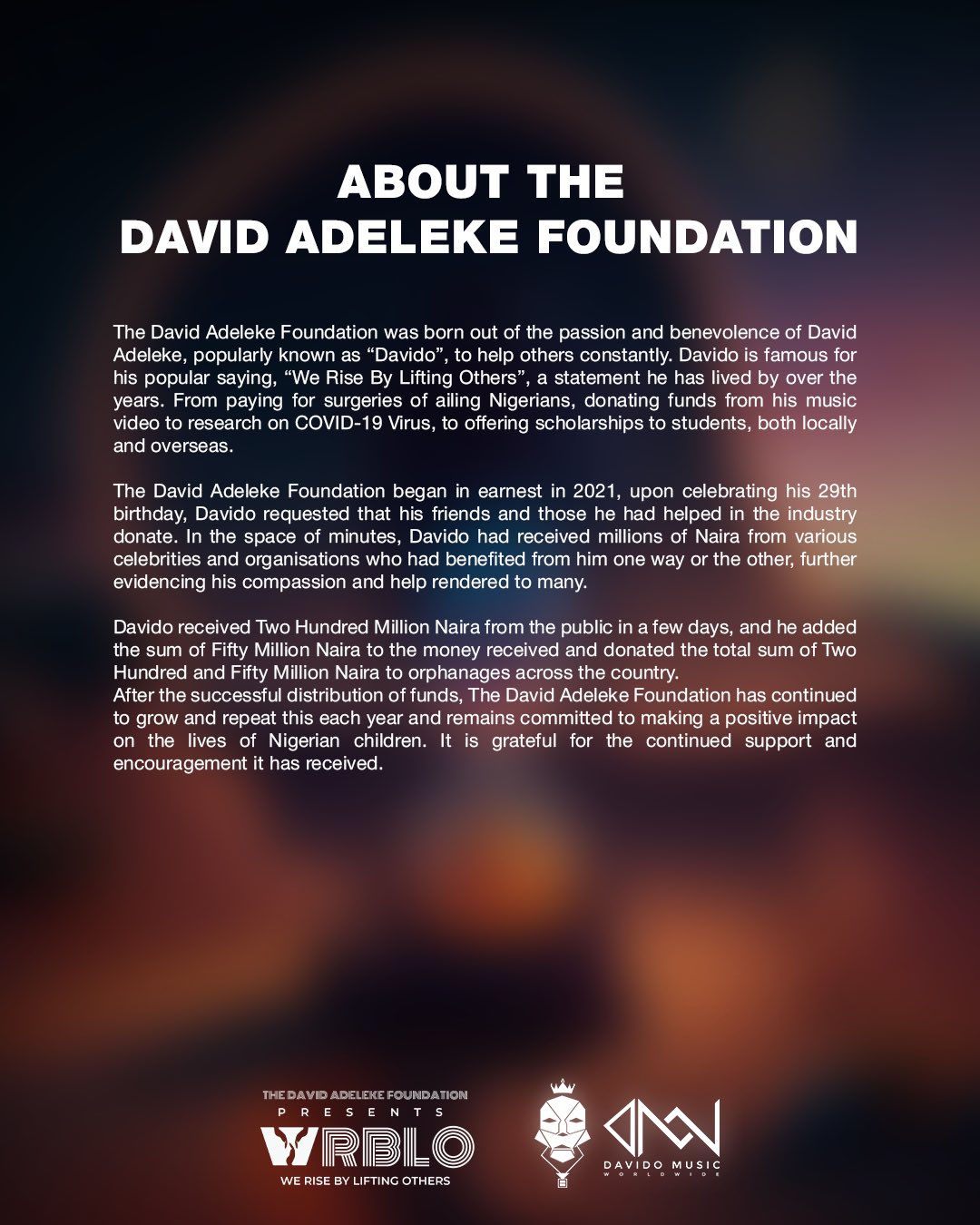 The following day, Davido wrote a brief note on his media page, stating that the money is his small contribution to the country.