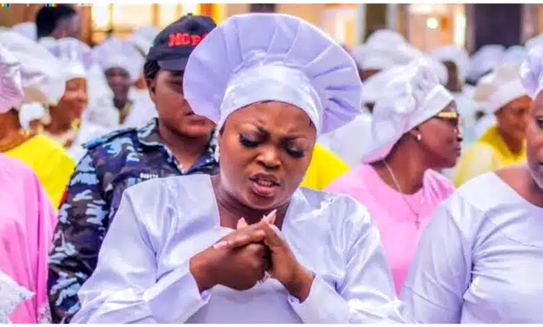 The Lagos State Deputy Governorship candidate of the People’s Democratic Party (PDP), Funke Akindele took to her page to share her experience of worship with the Celestial Headquarters of Christ, Ibukun-Olu Parish Aleke Circuit Headquarters in Ikorodu.