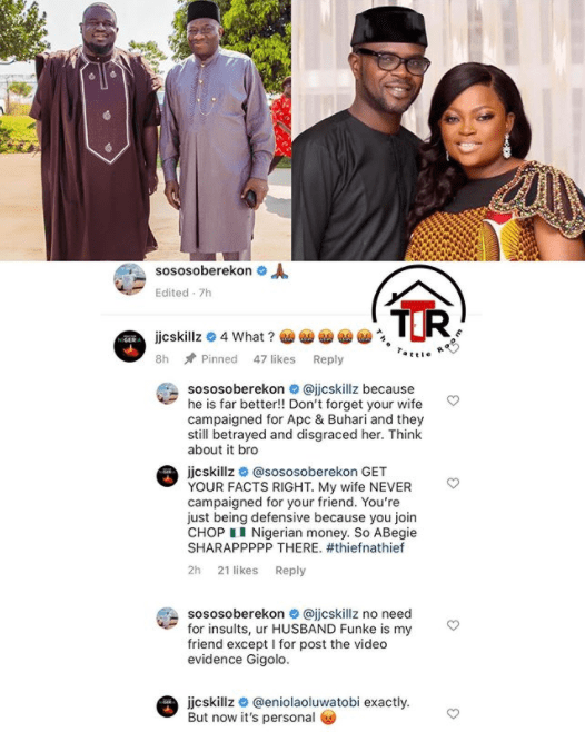 Funke Akindele’s husband, JJC Skillz and Soso Soberekon drag each other over politics