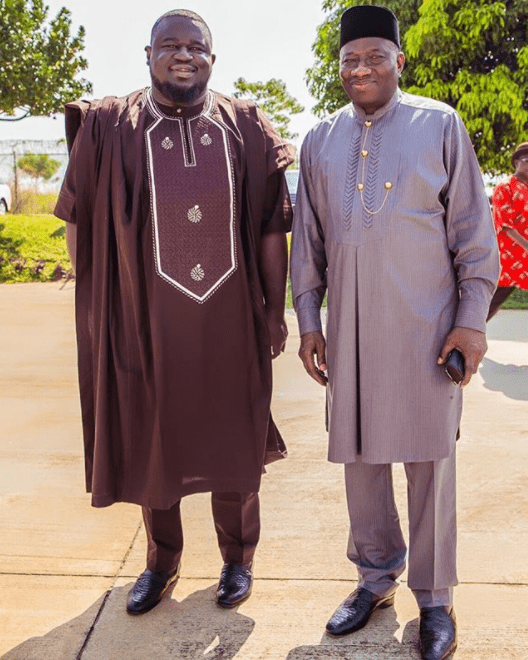 Soso Sobereokon, who recently indicated interest in going into politics, shared a photo of himself with former Nigerian president Goodluck Jonathan and added a prayer emoji.