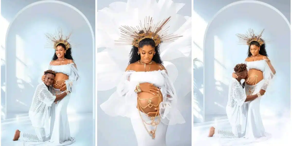 In the photos, Funnybros is seen kneeling lovingly, kissing and gazing adoringly at his wife’s baby bump, as she beams with joy, tenderly caressing the back of his neck.