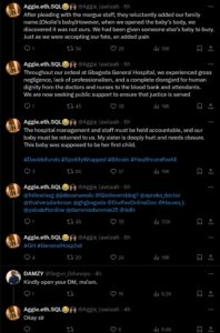 “Throughout our ordeal at Gbagada General Hospital, we experienced gross negligence, lack of professionalism, and a complete disregard for human dignity from the doctors and nurses to the blood bank and attendants.