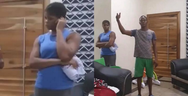 Househelp runs into toilet with knife after being caught stealing from a family in Lagos (videos)
