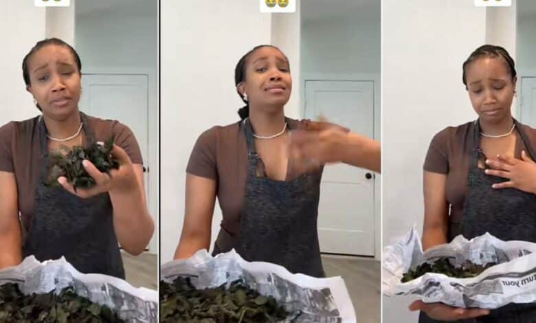 Abroad-based lady cries out after opening package of oha leaves her father sent