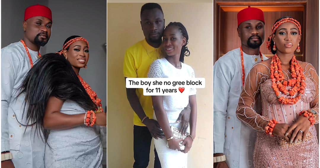 “She no gree leave me” – Man who has been dating lady for 11 years finally marries her, photos trend