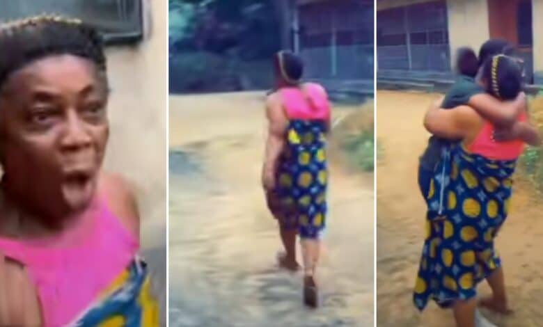 “Where she dey run go?” – Woman’s reaction trends as daughter pays her a surprise visit after returning from abroad (Video)