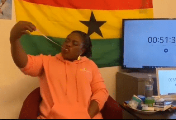 A Ghanaian woman sparks reactions as she attempts to chew gum for 7 days nonstop in a Chewing Gum Marathon to set a Guinness record.