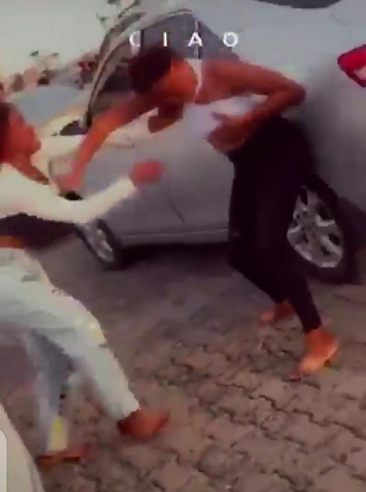 In the video, the girls could be seen fighting dirty and almost to the point of stripping each other in the process in the parking lot of a mall.