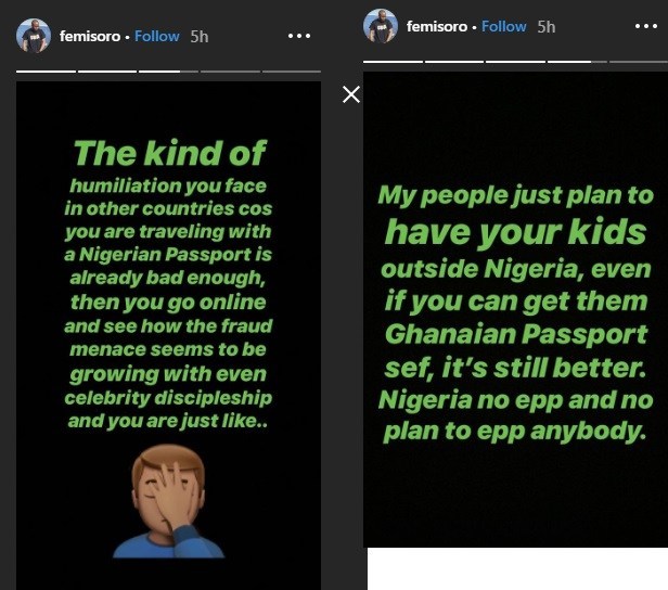 “The kind of humiliation you face in other countries cos you are travelling with a Nigerian Passport is already bad enough, then you go online and see how the fraud menace seems to be growing even with celebrity discipleshiple and you’re just like ….